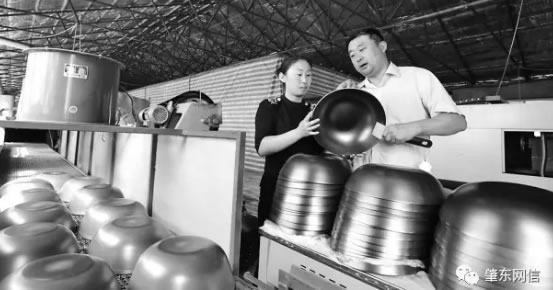 肇東市里木店鎮(zhèn)雙興村李木匠屯潘顯峰32歲時(shí)接過(guò)家里的鐵鍋小作坊,帶領(lǐng)10多名村民一起創(chuàng)業(yè)。歷經(jīng)15年的打拼生意紅火。目前,累計(jì)投入2000多萬(wàn)元。擁有自己鑄韻炊具有限公司和品牌。一年生產(chǎn)80多萬(wàn)口鍋,產(chǎn)品銷往東三省。在廠里打工的60多名村民月均收入5000多元。圖為潘顯峰(右一)在向村民傳授檢查產(chǎn)品質(zhì)量相關(guān)知識(shí)等。