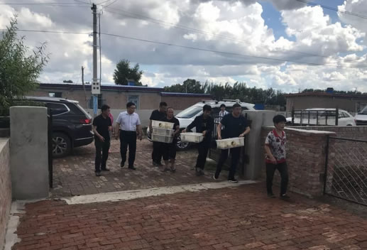 西園區(qū)辦事處和市煙草專賣局領(lǐng)導(dǎo)為明久鄉(xiāng)東升村貧困戶送去300只鵝雛