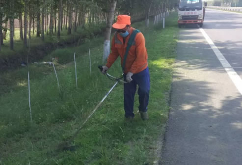 養(yǎng)護人員明確高草清理范圍,積極做好轄區(qū)內(nèi)公路路肩、邊坡高草修剪工作。作業(yè)時養(yǎng)護人員采用打草機進行打草,達到路肩、邊坡的“草坪化”效果,保證修剪質(zhì)量。