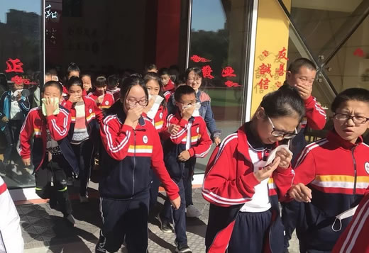 隨著廣播中急促的警報聲響起,演練正式開始,分布在學(xué)校多個教學(xué)樓的學(xué)生在老師的指揮下按照既定的疏散線路,迅速、有序、安全地疏散到安全地帶,5分鐘38秒千名師生成功疏散完畢。