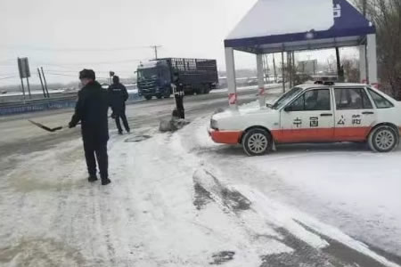 中心充分發(fā)揮除雪機(jī)械優(yōu)勢,采用梯隊(duì)漸次推進(jìn)方式,力爭最短時(shí)間內(nèi)清除積雪,保障車輛順暢通行;養(yǎng)護(hù)人員全力清除橋梁、急彎陡坡等路段積雪,并撒布防滑料,保障重點(diǎn)路段行車安全。